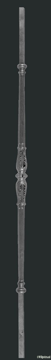 Sierspijlen uit smeedbaar gietijzer. Gietijzeren middenstukken met stalen tapeinden om het lassen bij samenstelling van de leuning te vergemakkelijken.